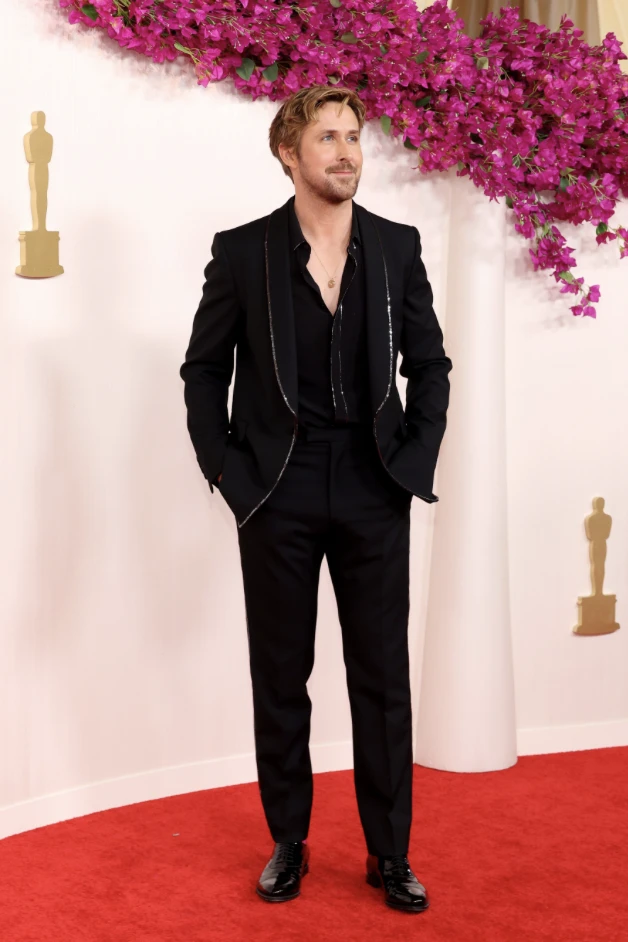 Patrząc na zestawy powyżej możemy zwrócić uwagę na Ryana Goslinga, gdzie dopasowanie ubrania jest bardzo dobre. Mimo czarnej, rozpiętej koszuli i złotych dodatków całość jest spójna ze sobą, a także z osobą noszącą. Na pewno nie jest to zestaw klasyczny i ponadczasowy, jednak widać, że ma to ręce i nogi. Z kolei drugi zestaw, gdzie czarna koszula została dobrana bez większego zastanowienia tylko podkreśla, że cały smoking jest tutaj ubraniem z przypadku. Dla porównania poniżej pokazujemy dwa zestawy z czerwonego dywanu, które są zgodne z zasadami męskiej elegancji.